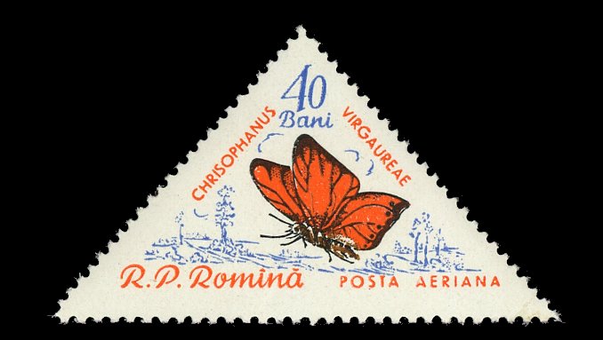 Visibility: public Image owner: none airmail 10/10/1960 40b multi dt=butterflies (1960 Romania) d=Chrysophanus virgaureae unwmk perf=14x14.5 Crops No visible images cropped from this one. Measurements Resolution is unknown. Source Source name: Colnect File URL: http://i.colnect.net/b/4840/901/Scarce-Copper-Chrysophanus-virgaureae.jpg Uploaded March 18, 2019, 2:13 am by Stan Shebs |