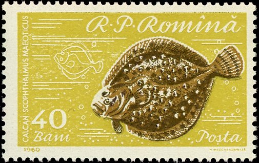 Visibility: public Image owner: none postage 12/5/1960 40b multi dt=fishes (1960 Romania) d=Black-Sea Turbot Kalkan Scophthalmus maeoticus unwmk Crops No visible images cropped from this one. Measurements Resolution is unknown. Source Source name: Colnect File URL: http://i.colnect.net/b/4840/967/Black-Sea-Turbot-Scophthalmus-maeoticus.jpg Uploaded March 18, 2019, 2:13 am by Stan Shebs |