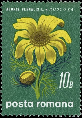 Visibility: public Image owner: none postage 2/25/1970 10b multi issue=Steppe flowers dt=steppe flowers d=Adonis vernalis unwmk perf=13.5 Crops No visible images cropped from this one. Measurements Resolution is unknown. Source Source name: Colnect File URL: http://i.colnect.net/b/5064/347/Pheasants-eye.jpg Uploaded March 18, 2019, 2:18 am by Stan Shebs |