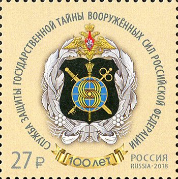Visibility: public Image owner: none postage 11/13/2018 27₽ multi issue=100th Anniversary of the State Secret Protection System unwmk Crops No visible images cropped from this one. Measurements Resolution is unknown. Source Source name: Colnect File URL: http://i.colnect.net/b/5349/989/Centenary-of-Armed-Forces-Secret-Service-Branch.jpg Uploaded March 18, 2019, 8:31 pm by Stan Shebs |
