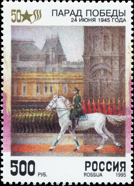 Visibility: public Image owner: none postage 4/7/1995 500r multi issue=50th Anniversary of Victory d=marshal G.Zhukov on white horse unwmk Crops No visible images cropped from this one. Measurements Resolution is unknown. Source Source name: Colnect File URL: http://i.colnect.net/b/4977/603/Victory-Parade-Moscow-1945-Marshal-GZhukov.jpg Uploaded March 18, 2019, 9:19 pm by Stan Shebs |