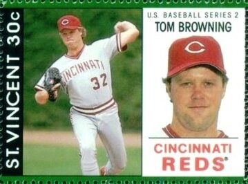 Visibility: public Image owner: none postage 11/30/1989 30c multi dt=Baseball Players of the Major League Baseball d=Tom Browning wmk=St Edwards crown & CA perf=12.5 Crops No visible images cropped from this one. Measurements Resolution is unknown. Source Source name: Colnect File URL: http://i.colnect.net/b/5611/937/Tom-Browning.jpg Uploaded March 19, 2019, 8:32 pm by Stan Shebs |