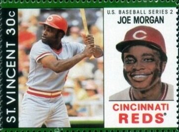Visibility: public Image owner: none postage 11/30/1989 30c multi dt=Baseball Players of the Major League Baseball d=Joe Morgan wmk=St Edwards crown & CA perf=12.5 Crops No visible images cropped from this one. Measurements Resolution is unknown. Source Source name: Colnect File URL: http://i.colnect.net/b/5615/179/Joe-Morgan.jpg Uploaded March 19, 2019, 8:32 pm by Stan Shebs |