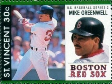 Visibility: public Image owner: none postage 11/30/1989 30c multi dt=Baseball Players of the Major League Baseball d=Mike Greenwell wmk=St Edwards crown & CA perf=12.5 Crops No visible images cropped from this one. Measurements Resolution is unknown. Source Source name: Colnect File URL: http://i.colnect.net/b/5621/539/Mike-Greenwell.jpg Uploaded March 19, 2019, 8:32 pm by Stan Shebs |
