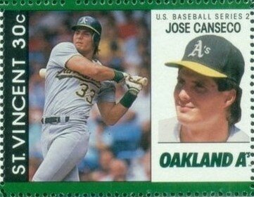 Visibility: public Image owner: none postage 11/30/1989 30c multi dt=Baseball Players of the Major League Baseball d=Jose Canseco wmk=St Edwards crown & CA perf=12.5 Crops No visible images cropped from this one. Measurements Resolution is unknown. Source Source name: Colnect File URL: http://i.colnect.net/b/5644/018/Jose-Canseco.jpg Uploaded March 19, 2019, 8:32 pm by Stan Shebs |