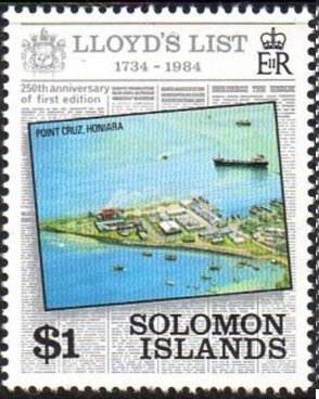Visibility: public Image owner: none postage 4/21/1984 $1 multi issue=250th Anniversary of "Lloyds List" dt=ships (1984 Solomon Islands) d=Silwyn Range at Point Cruz, Honiara wmk=crown & CA spiral perf=14.25 Crops No visible images cropped from this one. Measurements Resolution is unknown. Source Source name: Colnect File URL: http://i.colnect.net/b/5210/423/Pont-Cruz-Honiara.jpg Uploaded March 22, 2019, 7:50 pm by Stan Shebs |