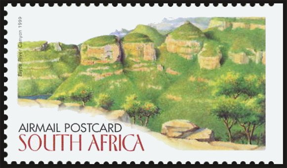 Visibility: public Image owner: none postage 8/16/1999 1.30r airmail postcard multi issue=Explore South Africa - Mpumalanga and Northern Province unwmk Crops No visible images cropped from this one. Measurements Resolution is unknown. Source Source name: Colnect File URL: http://i.colnect.net/b/5405/341/Blyde-River-Canyon.jpg Uploaded March 24, 2019, 8:25 pm by Stan Shebs |