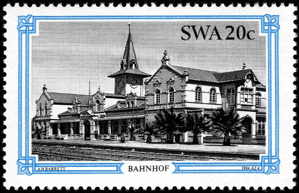 Visibility: public Image owner: none postage 3/8/1984 20c dt=Historic buildings of Swakopmund d=Bahnhof wmk=RSA in triangle Crops No visible images cropped from this one. Measurements Resolution is unknown. Source Source name: Colnect File URL: http://i.colnect.net/b/5162/069/Bahnhof.jpg Uploaded March 25, 2019, 12:32 am by Stan Shebs |
