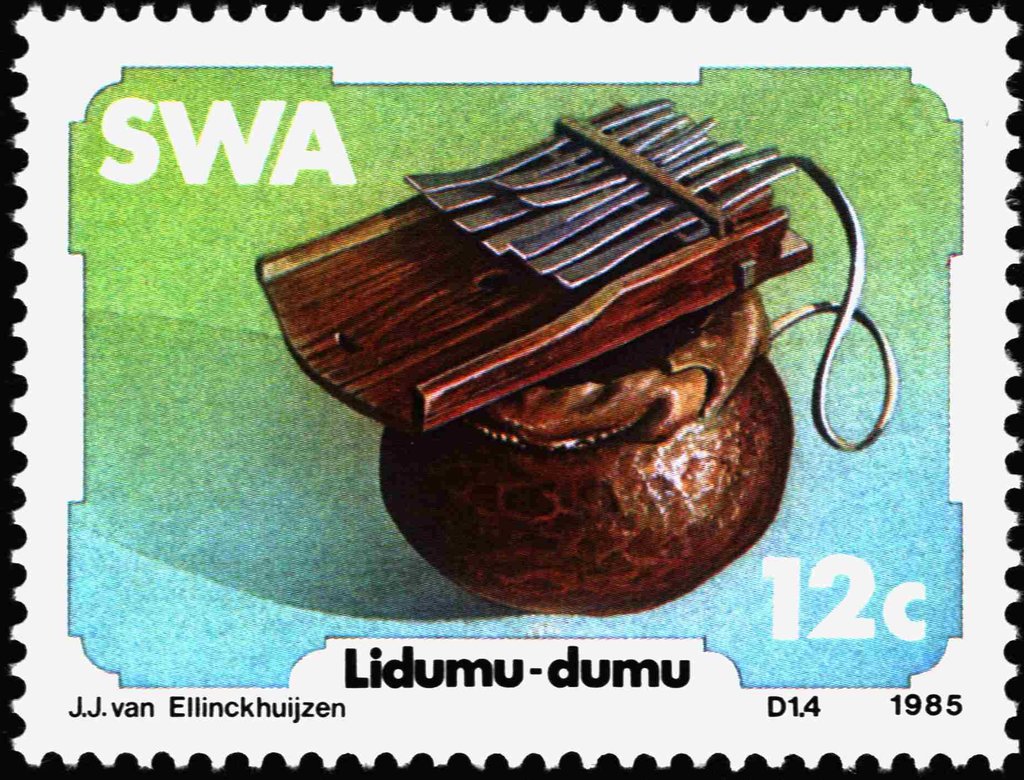 Visibility: public Image owner: none postage 10/17/1985 12c multi dt=traditional musical instruments (1985 South West Africa) wmk=RSA in triangle Crops No visible images cropped from this one. Measurements Resolution is unknown. Source Source name: Colnect File URL: http://i.colnect.net/b/5211/067/Lidumu-dumu.jpg Uploaded March 25, 2019, 12:55 am by Stan Shebs |