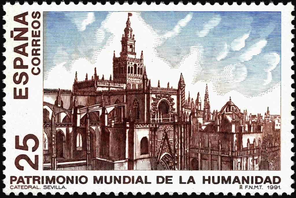 Visibility: public Image owner: none postage 12/16/1991 25pta multi issue=UNESCO World Heritage 1991 d=Castle & Cathedral Seville unwmk perf=12.75x12.5 Crops No visible images cropped from this one. Measurements Resolution is unknown. Source Source name: Colnect File URL: http://i.colnect.net/b/5230/180/Cathedral-of-Saint-Mary-of-the-See.jpg Uploaded March 25, 2019, 1:21 am by Stan Shebs |