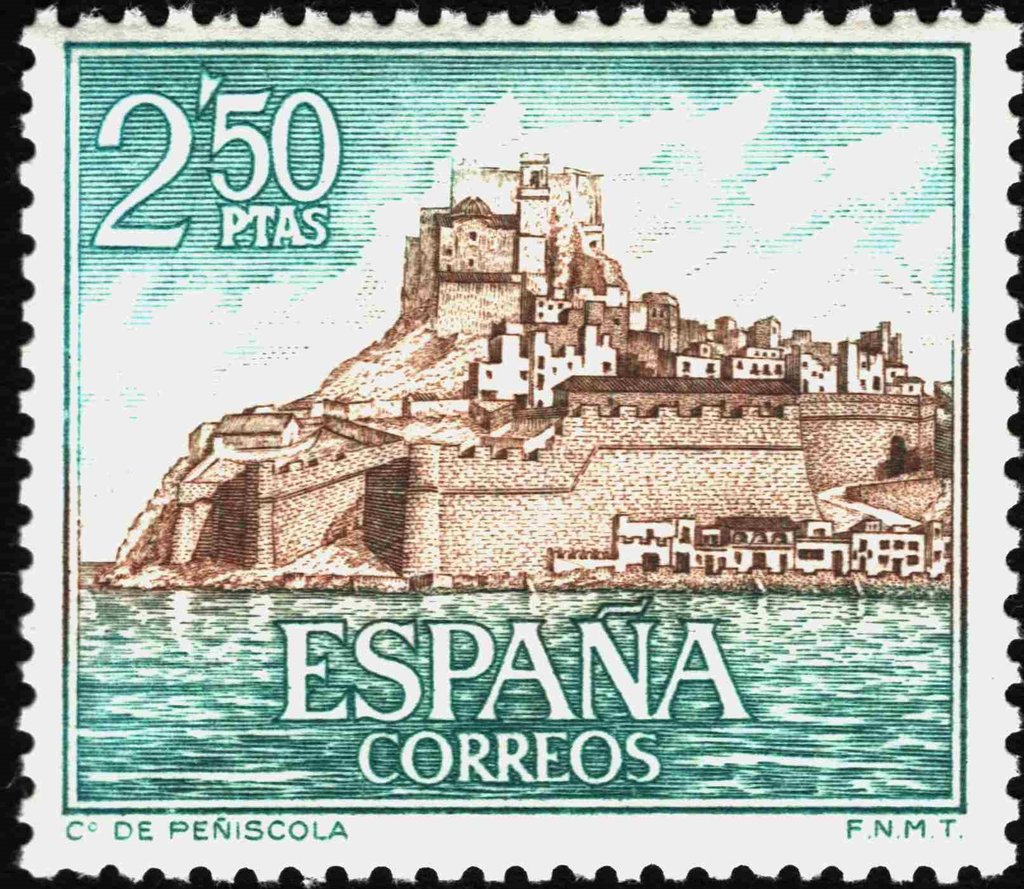 Visibility: public Image owner: none postage 8/11/1967 2.50p grnbl&dkbrn dt=castles (1966) d=Peñiscola Castle unwmk perf=14 Crops No visible images cropped from this one. Measurements Resolution is unknown. Source Source name: Colnect File URL: http://i.colnect.net/b/5227/455/Peñiscola-Castle.jpg Uploaded March 25, 2019, 3:53 am by Stan Shebs |