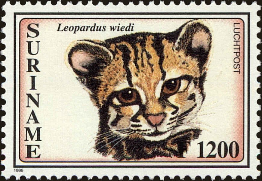 Visibility: public Image owner: none airmail 5/31/1995 1200g multi dt=cats (1995 Surinam) d=Leopardus wiedi (1995) unwmk Crops No visible images cropped from this one. Measurements Resolution is unknown. Source Source name: Colnect File URL: http://i.colnect.net/b/4994/988/Margay-Leopardus-wiedi.jpg Uploaded March 25, 2019, 8:33 pm by Stan Shebs |