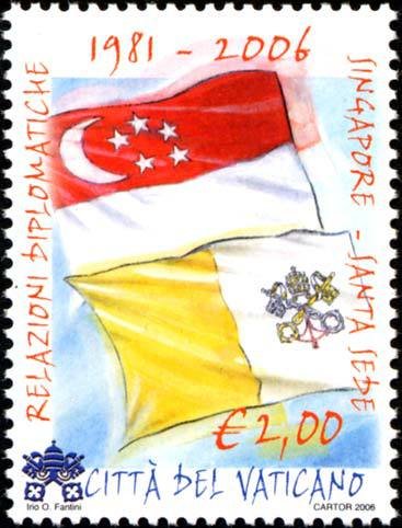 Visibility: public Image owner: none postage 10/12/2006 2.00€ multi issue=25th Anniversary of Diplomatic Relations between Singapore and the Holy See unwmk Crops No visible images cropped from this one. Measurements Resolution is unknown. Source Source name: Colnect File URL: http://i.colnect.net/b/809/001/Flags-of-the-Vatican-City-and-Singapore.jpg Uploaded August 26, 2014, 11:01 pm by Stan Shebs |
