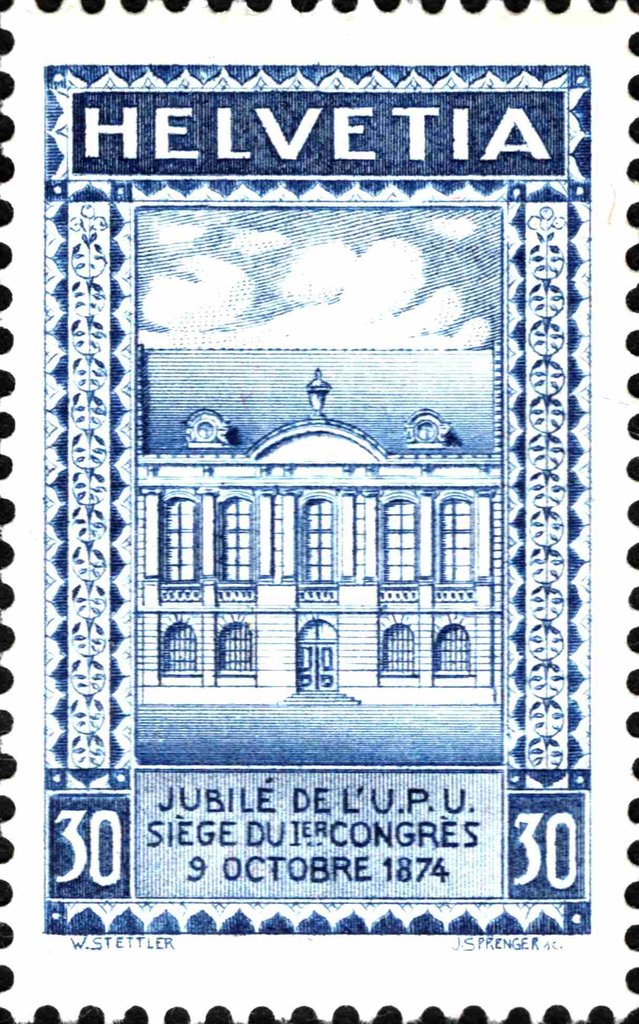 Visibility: public Image owner: none postage 10/9/1924 30(c) dkbl issue=UPU 50th d=Bern building wmk=Swiss cross perf=11.5 Crops No visible images cropped from this one. Measurements Resolution is unknown. Source Source name: Colnect File URL: http://i.colnect.net/b/5251/035/Ancient-House-of-Estates-in-Bern.jpg Uploaded March 26, 2019, 3:14 pm by Stan Shebs |