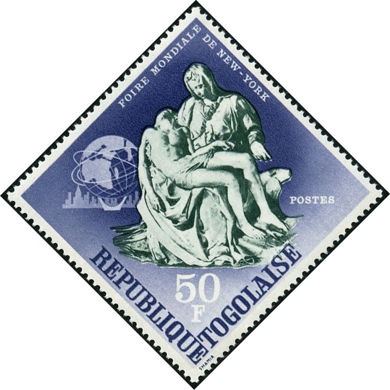 Visibility: public Image owner: none postage 8/28/1965 50fr issue=New York World's Fair 1964 d=La Pieta unwmk perf=14 Crops No visible images cropped from this one. Measurements Resolution is unknown. Source Source name: Colnect File URL: http://i.colnect.net/b/5138/081/La-Pieta.jpg Uploaded March 28, 2019, 3:37 pm by Stan Shebs |