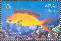 Visibility: public Image owner: none postage 12/24/2002 0.10r multi dt=Reef Fish of Maldives unwmk Crops No visible images cropped from this one. Measurements Resolution is unknown. Source Source name: Colnect File URL: http://i.colnect.net/images/b/961/965/Flame-Basslet-Pseudanthias-ignitus-.jpg Uploaded August 26, 2014, 11:04 pm by Stan Shebs |