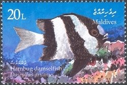 Visibility: public Image owner: none postage 12/24/2002 0.20r multi dt=Reef Fish of Maldives unwmk Crops No visible images cropped from this one. Measurements Resolution is unknown. Source Source name: Colnect File URL: http://i.colnect.net/images/b/961/967/Banded-Dascyllus-Dascyllus-aruanus.jpg Uploaded August 26, 2014, 11:04 pm by Stan Shebs |