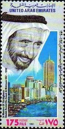 Visibility: public Image owner: none postage 10/7/1991 175f multi issue=1st Anniversary of the Death of Shaikh Rashid bin Said al-Maktou unwmk perf=13 Crops No visible images cropped from this one. Measurements Resolution is unknown. Source Source name: Colnect File URL: http://i.colnect.net/b/5610/760/Sheikh-Rashid-and-City-skyline.jpg Uploaded April 1, 2019, 7:33 pm by Stan Shebs |