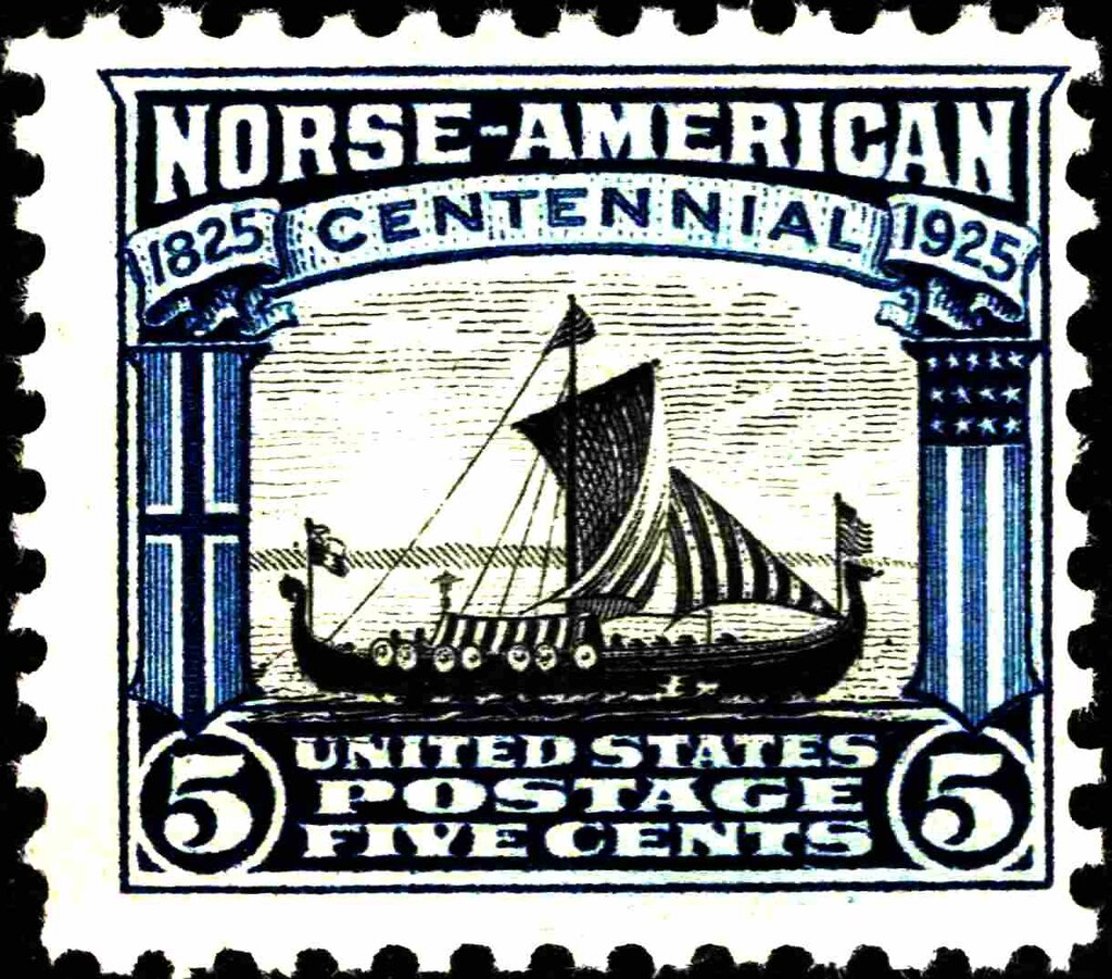 Visibility: public Image owner: none postage 5/18/1925 5c dkbl&blk issue=Norse-American d=Viking ship replica unwmk perf=11 Crops No visible images cropped from this one. Measurements Resolution is unknown. Source Source name: Colnect File URL: http://i.colnect.net/b/5578/870/Viking-ship-coat-of-arms-of-Norway-and-the-USA.jpg Uploaded April 2, 2019, 12:57 am by Stan Shebs |