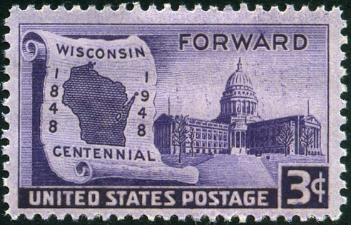 Visibility: public Image owner: none postage 5/29/1948 3c pur issue=Wisconsin 100th d=Map of Wisconsin on Scroll & State Capital unwmk perf=11x10.5 Crops No visible images cropped from this one. Measurements Resolution is unknown. Source Source name: Colnect File URL: http://i.colnect.net/b/5026/236/Centennial-Wisconsin-Statehood-Map-on-Scroll-and-Capital.jpg Uploaded April 2, 2019, 1:20 am by Stan Shebs |