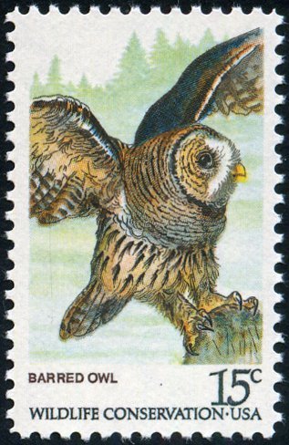 Visibility: public Image owner: none postage 8/26/1978 15c multi dt=American owls d=barred owl unwmk perf=11 Crops No visible images cropped from this one. Measurements Resolution is unknown. Source Source name: Colnect File URL: http://i.colnect.net/b/4845/810/Barred-Owl-nbsp-Strix-varia.jpg Uploaded April 2, 2019, 1:45 am by Stan Shebs |