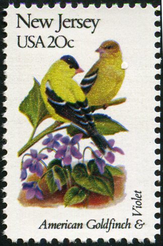 Visibility: public Image owner: none postage 4/14/1982 20c multi issue=state birds & flowers dt=state birds & flowers d=New Jersey unwmk perf=10.5x11 Crops No visible images cropped from this one. Measurements Resolution is unknown. Source Source name: Colnect File URL: http://i.colnect.net/b/5097/029/New-Jersey---American-Goldfinch-Violet.jpg Uploaded April 2, 2019, 1:56 am by Stan Shebs |