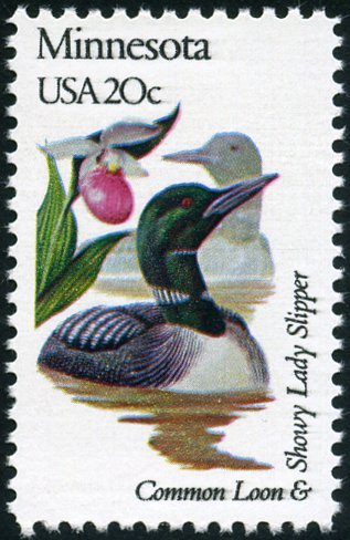 Visibility: public Image owner: none postage 4/14/1982 20c multi issue=state birds & flowers dt=state birds & flowers d=Minnesota unwmk perf=10.5x11 Crops No visible images cropped from this one. Measurements Resolution is unknown. Source Source name: Colnect File URL: http://i.colnect.net/b/5097/022/Minnesota---Common-Loon-Showy-Lady-Slipper.jpg Uploaded April 2, 2019, 1:56 am by Stan Shebs |