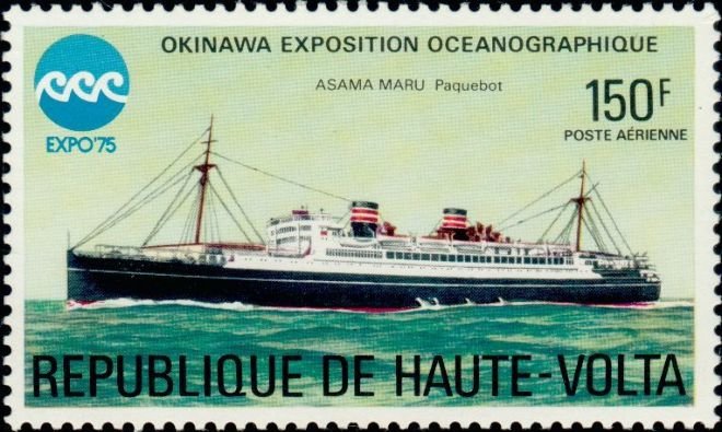 Visibility: public Image owner: none postage 9/26/1975 150f multi issue=EXPO '75 d=Asama Maru unwmk Crops No visible images cropped from this one. Measurements Resolution is unknown. Source Source name: Colnect File URL: http://i.colnect.net/b/5117/095/Asama-Maru.jpg Uploaded April 2, 2019, 9:19 pm by Stan Shebs |