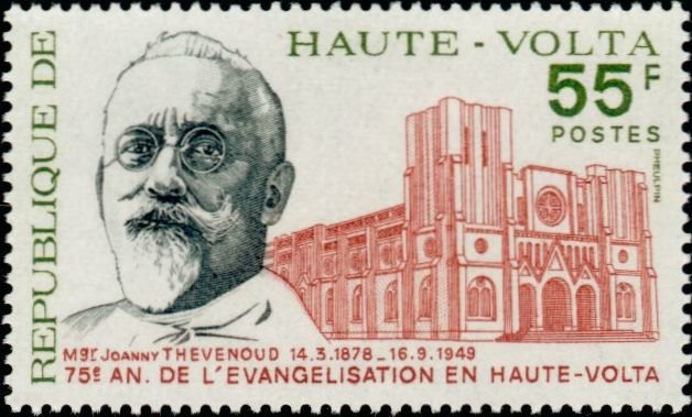 Visibility: public Image owner: none postage 12/29/1975 55f multi issue=75 year Christianisation in Upper Volta d=Joanny Thevenoud unwmk Crops No visible images cropped from this one. Measurements Resolution is unknown. Source Source name: Colnect File URL: http://i.colnect.net/b/5117/098/Joanny-Thevenoud.jpg Uploaded April 2, 2019, 9:19 pm by Stan Shebs |