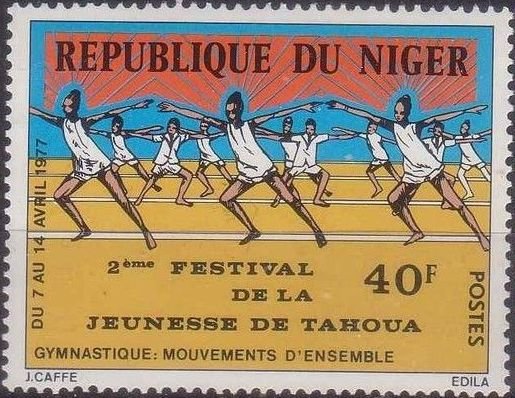 Visibility: public Image owner: none postage 4/7/1977 40fr multi issue=2nd Tahoua Youth Festival d=gymnastics (1977) unwmk perf=13x12.5 Crops No visible images cropped from this one. Measurements Resolution is unknown. Source Source name: Colnect File URL: http://i.colnect.net/b/5349/523/Group-Gymnastics.jpg Uploaded April 9, 2019, 3:58 pm by Stan Shebs |