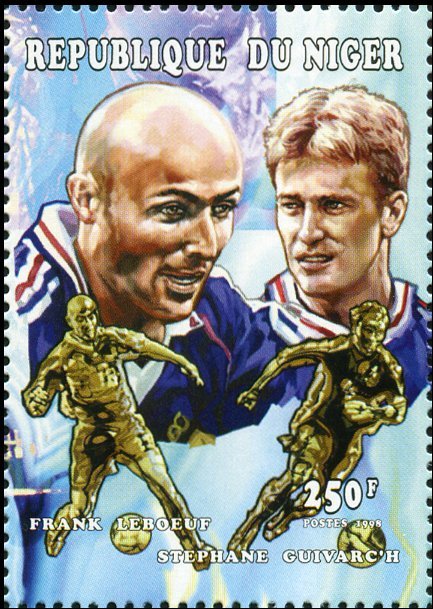 Visibility: public Image owner: none postage 9/14/1998 250fr multi issue=Players of the French National Football Team unwmk perf=13.25 Crops No visible images cropped from this one. Measurements Resolution is unknown. Source Source name: Colnect File URL: http://i.colnect.net/b/4969/680/Franck-Leboeuf-et-Stéphane-Guivarc-h.jpg Uploaded April 9, 2019, 4:43 pm by Stan Shebs |