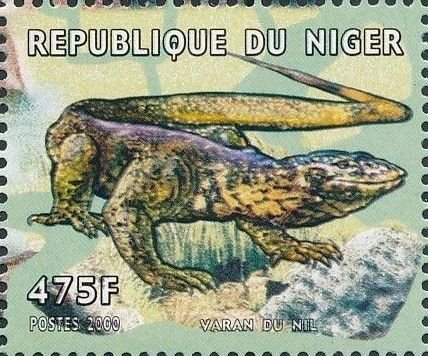 Visibility: public Image owner: none postage 7/27/2000 475fr multi issue=Extinct and Recent Animals of Africa dt=Extinct and Recent animals of Africa d=Varanus niloticus (2000) unwmk Crops No visible images cropped from this one. Measurements Resolution is unknown. Source Source name: Colnect File URL: http://i.colnect.net/b/5405/166/Varan-du-Nil.jpg Uploaded April 9, 2019, 5:06 pm by Stan Shebs |