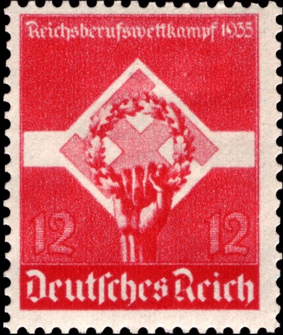 Visibility: public Image owner: none postage 4/26/1935 12pf crim d=hand holding wreath & swastika wmk=swastikas perf=14 Crops No visible images cropped from this one. Measurements Resolution is unknown. Source Source name: Colnect File URL: http://i.colnect.net/b/5233/567/Fist-oak-leaf-wreath-swastika.jpg Uploaded April 12, 2019, 9:18 pm by Stan Shebs |