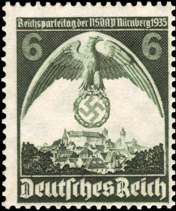 Visibility: public Image owner: none postage 8/30/1935 6pf dkgrn d=eagle over Nuremberg Castle wmk=swastikas perf=14 Crops No visible images cropped from this one. Measurements Resolution is unknown. Source Source name: Colnect File URL: http://i.colnect.net/b/5233/603/Nuremberg-Congress.jpg Uploaded April 12, 2019, 9:18 pm by Stan Shebs |