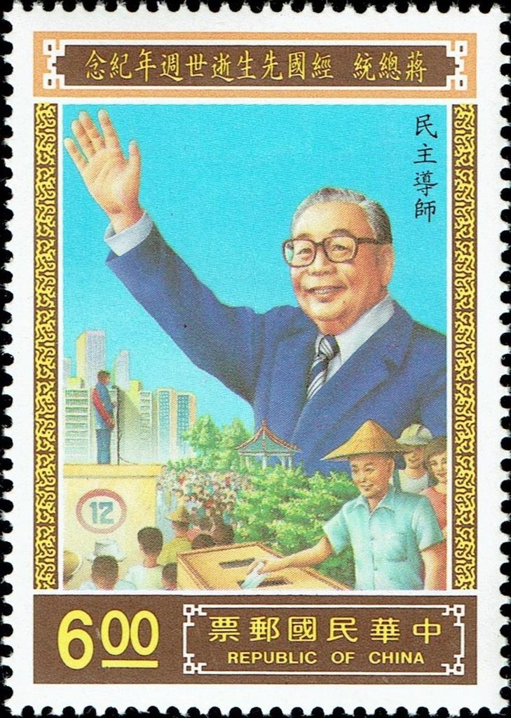 Visibility: public Image owner: none postage 1/13/1989 $6 multi issue=1st Anniversary of the Death of President Chiang Ching-Kuo Crops No visible images cropped from this one. Measurements Resolution is unknown. Source Source name: Colnect File URL: http://i.colnect.net/b/4849/614/Chiang-Ching-Huo.jpg Uploaded June 12, 2019, 7:37 pm by Stan Shebs |
