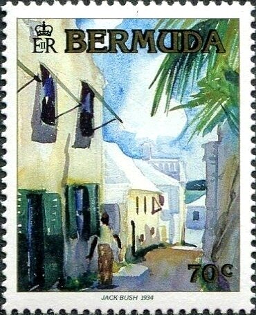 Visibility: public Image owner: none postage 5/16/1991 70c multi dt=paintings (1991 Bermuda) d=Old Maids Lane, by Jack Bush wmk=mult crown & script CA perf=13.75x14.25 Crops No visible images cropped from this one. Measurements Resolution is unknown. Source Source name: Colnect File URL: http://i.colnect.net/b/5866/354/Old-Maid-s-Lane-by-Jack-Bush.jpg Uploaded June 17, 2019, 7:57 pm by Stan Shebs |