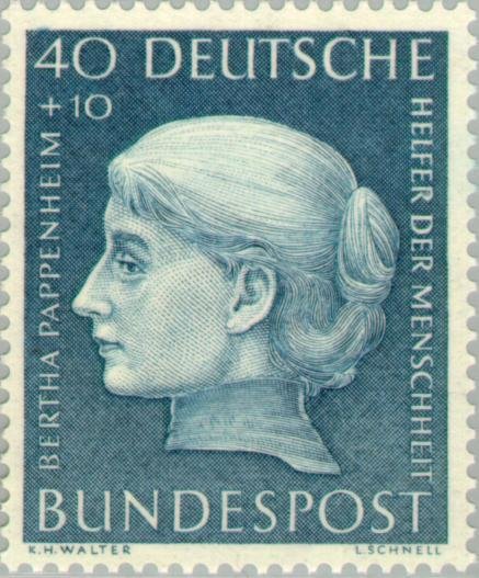 Visibility: public Image owner: none semipostal 12/28/1954 40+10(pf) dkgraybl issue=welfare 1954 d=Bertha Pappenheim wmk=DBP Crops No visible images cropped from this one. Measurements Resolution is unknown. Source Source name: Colnect File URL: http://i.colnect.net/images/b/152/186/Bertha-Pappenheim-1859-1936-social-worker.jpg Uploaded February 12, 2013, 6:42 am by Stan Shebs |