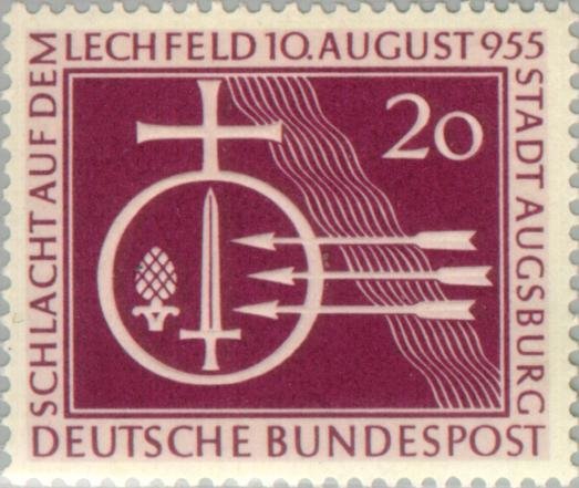 Visibility: public Image owner: none postage 8/10/1955 20(pf) redpur issue=Battle of Lechfeld 1000th unwmk perf=14 Crops No visible images cropped from this one. Measurements Resolution is unknown. Source Source name: Colnect File URL: http://i.colnect.net/b/152/202/Orb-with-sword-and-pine-cones-3-arrows-stylized-river-cour.jpg Uploaded August 27, 2014, 1:42 pm by Stan Shebs |
