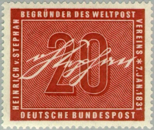 Visibility: public Image owner: none postage 1/7/1956 20(pf) dkred issue=Heinrich von Stephan 125th wmk=DBP & rosettes perf=14 Crops No visible images cropped from this one. Measurements Resolution is unknown. Source Source name: Colnect File URL: http://i.colnect.net/b/152/219/Value-with-signature--v-Stephan-.jpg Uploaded August 27, 2014, 1:42 pm by Stan Shebs |
