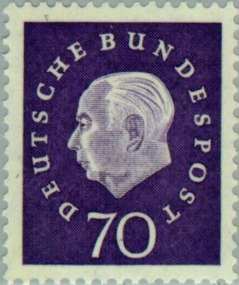Visibility: public Image owner: none postage 70(pf) pur issue=1959 d=Heuss wmk=DBP & rosettes perf=14 Crops No visible images cropped from this one. Measurements Resolution is unknown. Source Source name: Colnect File URL: http://i.colnect.net/b/152/314/Prof-Dr-Theodor-Heuss-1884-1963-1st-German-President.jpg Uploaded February 15, 2013, 1:40 pm by Stan Shebs |