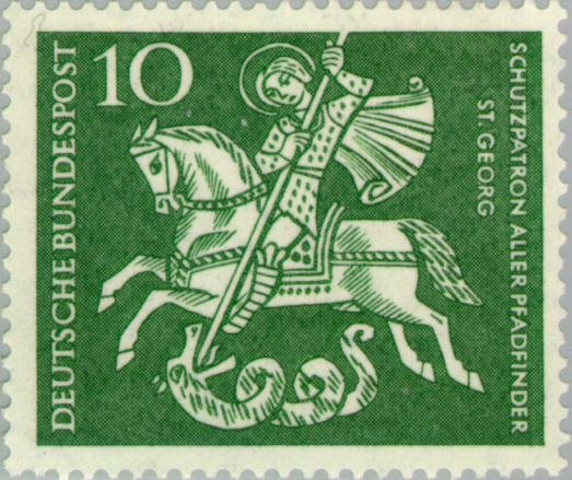 Visibility: public Image owner: none postage 4/22/1961 10(pf) grn d=St George wmk=DBP & rosettes perf=14 Crops No visible images cropped from this one. Measurements Resolution is unknown. Source Source name: Colnect File URL: http://i.colnect.net/b/152/365/Saint-George-Dragonslayer-patron-saint-of-the-Boy-Scouts.jpg Uploaded February 15, 2013, 6:52 pm by Stan Shebs |