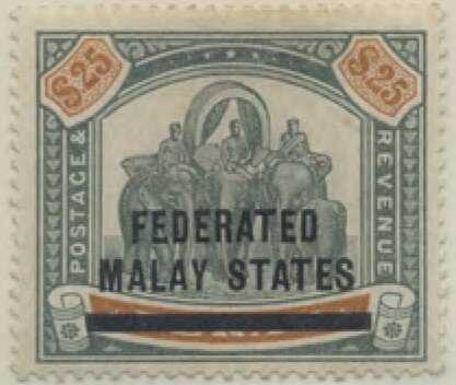 Visibility: public Image owner: none postage $25 grn&org issue=1900c d=elephants (1895) wmk=crown & CC perf=14 Crops No visible images cropped from this one. Measurements Resolution is unknown. Source Source name: Colnect File URL: http://i.colnect.net/b/6007/110/Perak-Elephant-Overprinted--Federated-Malay-States-.jpg Uploaded October 16, 2019, 10:00 pm by Stan Shebs |