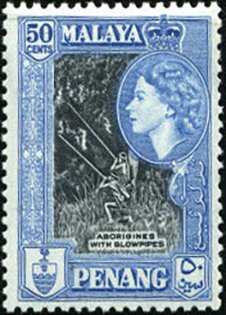 Visibility: public Image owner: none postage 6/26/1957 50c bl&blk issue=Elizabeth II pictorials d=aborigines with blowpipes & Queen Elizabeth II & arms of Penang Crops No visible images cropped from this one. Measurements Resolution is unknown. Source Source name: Colnect File URL: http://i.colnect.net/b/5918/352/Aborigines.jpg Uploaded October 17, 2019, 5:49 pm by Stan Shebs |