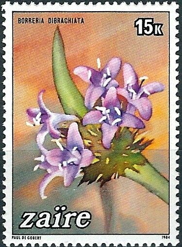 Visibility: public Image owner: none postage 5/28/1984 15k multi dt=flowers of Zaire unwmk Crops No visible images cropped from this one. Measurements Resolution is unknown. Source Source name: Colnect File URL: http://i.colnect.net/b/5978/909/Borreria-Dibraghiata.jpg Uploaded October 30, 2019, 5:18 pm by Stan Shebs |