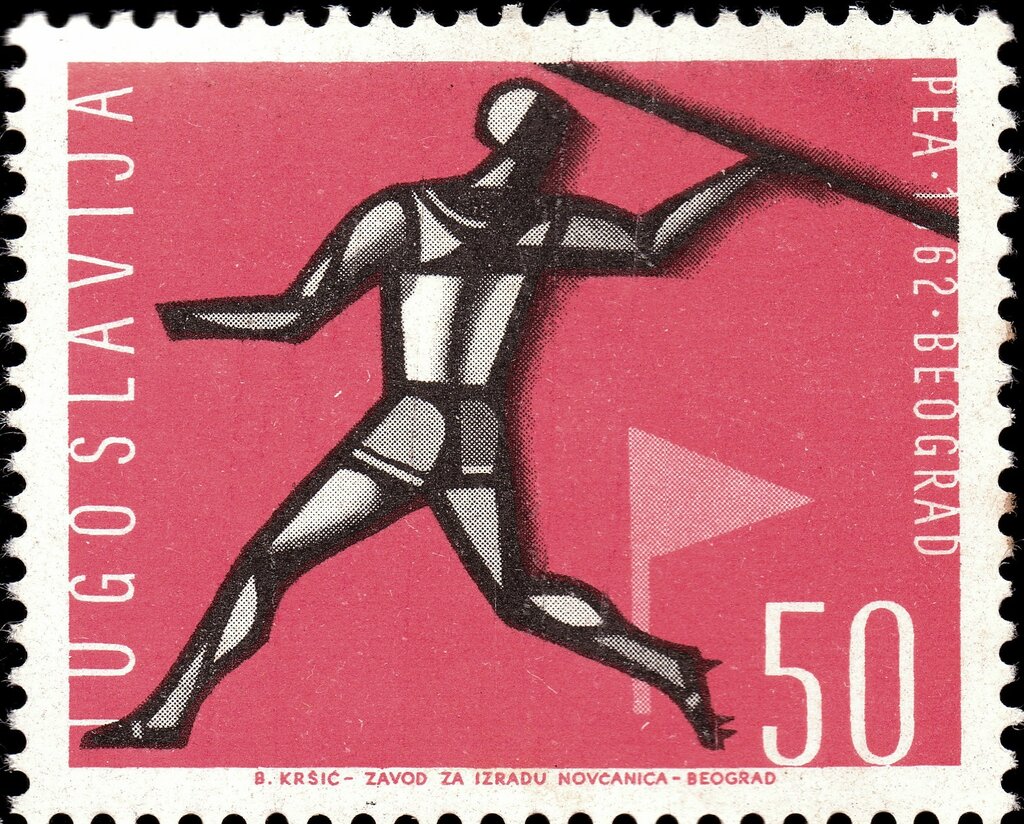 Visibility: public Image owner: none postage 7/10/1962 50d issue=7th European Championships d=javelin thrower (1962) unwmk perf=12.5 Crops No visible images cropped from this one. Measurements Resolution is unknown. Source Source name: Colnect File URL: http://i.colnect.net/b/5501/932/Javelin-throw.jpg Uploaded October 30, 2019, 6:10 pm by Stan Shebs |