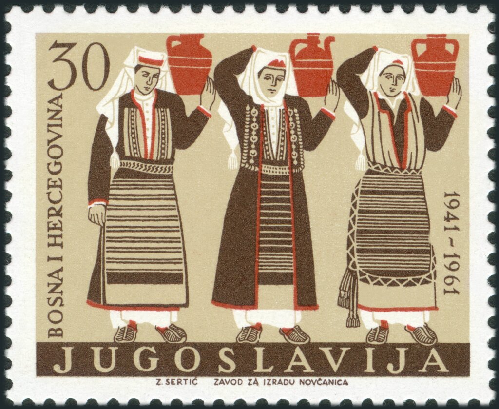 Visibility: public Image owner: none postage 11/28/1961 30d multi dt=regional costumes (1961 Yugoslavia) d=Bosnia i Hercegovina unwmk perf=12.5 Crops No visible images cropped from this one. Measurements Resolution is unknown. Source Source name: Colnect File URL: http://i.colnect.net/b/5669/239/Folk-Costumes-of-Bosnia-and-Herzegovina.jpg Uploaded October 30, 2019, 7:25 pm by Stan Shebs |