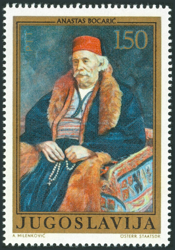 Visibility: public Image owner: none postage 11/29/1971 1.50d gold&multi dt=19th-century portrait paintings d=Merchant Ivanisevic from Mostar by Anastas Bocaric unwmk perf=13.25x14 Crops No visible images cropped from this one. Measurements Resolution is unknown. Source Source name: Colnect File URL: http://i.colnect.net/b/5722/173/-Merchant-Ivanisevic-from-Mostar--by-Anastas-Bocaric.jpg Uploaded October 30, 2019, 7:34 pm by Stan Shebs |