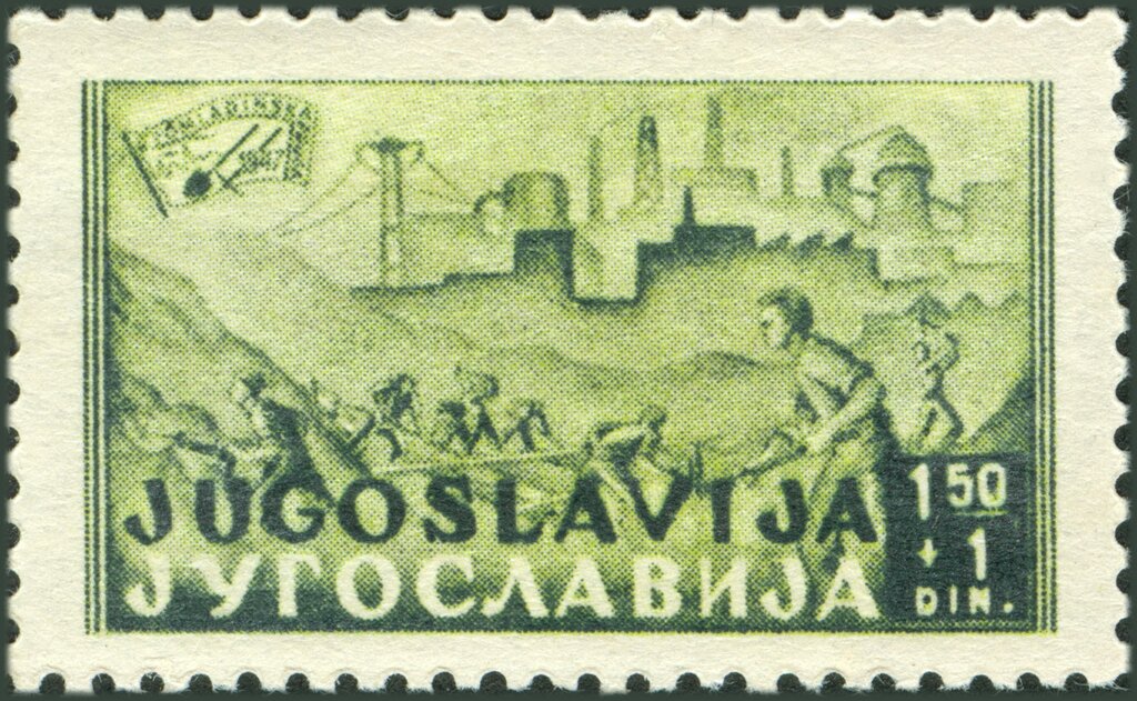 Visibility: public Image owner: none semipostal 9/25/1947 1.50+1din yelgrn&grn issue=Construction of the Samac-Sarajevo Railway unwmk perf=11.5x12 Crops No visible images cropped from this one. Measurements Resolution is unknown. Source Source name: Colnect File URL: http://i.colnect.net/b/5660/326/Young-Railway-Laborers.jpg Uploaded October 30, 2019, 8:23 pm by Stan Shebs |