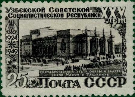 Visibility: public Image owner: none postage 1/3/1950 25k grayblk issue=Uzbek SSR 25th d=State Opera and Ballet theatre unwmk perf=12 Crops No visible images cropped from this one. Measurements Resolution is unknown. Source Source name: Colnect File URL: http://i.colnect.net/b/5113/788/The-Navoi-State-Theatre-for-Opera-and-Ballet-in-Tashkent.jpg Uploaded October 31, 2019, 7:36 pm by Stan Shebs |