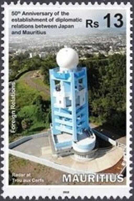 Visibility: public Image owner: none postage 4/30/2019 13r multi issue=50th Anniversary of diplomatic relations between Japan and Mauritius d=Radar at Trou aux Cerfs wmk=mult crown & script CA Crops No visible images cropped from this one. Measurements Resolution is unknown. Source Source name: Colnect File URL: http://i.colnect.net/b/5788/043/50th-Anniversary-of-Diplomatic-Relations-with-Japan.jpg Uploaded November 3, 2019, 9:23 pm by Stan Shebs |